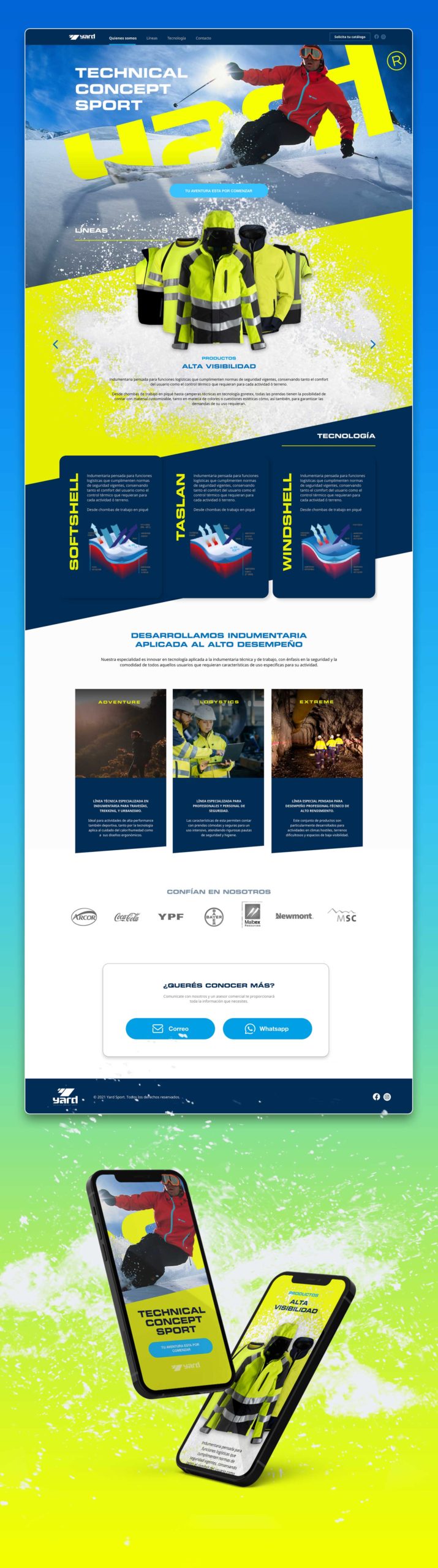 Arte conceptual para desarrollo de landing page para la marca Yard Sport, marca dedicada a la confección de indumentaria deportiva y de seguridad de alta performance, con especial énfasis en ambientes de baja temperatura.